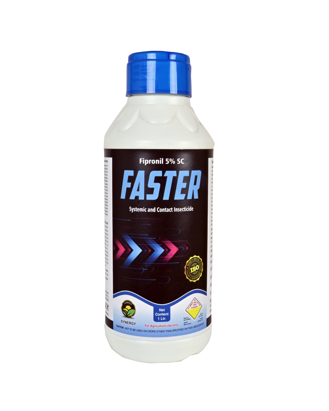 DESCRIPTION: FASTER (Fipronil 5% SC) Is A Modern Insecticide Of Phenylpyrazole Group Which Controls The Insect Pests Of Rice, Chilli, Cabbage/cauliflower And Sugarcane Effectively. It Has Been Proven To Offer Low Dose, Highly Effective Insect Control Against A Broad Range Of Economically Important Pests.